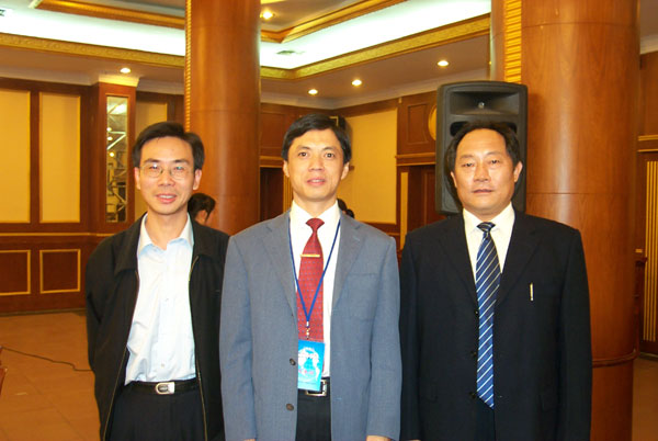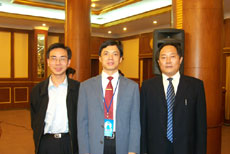 我网CEO于洪城(右)与黄卫宁(中)、丁文平(左)合影 |