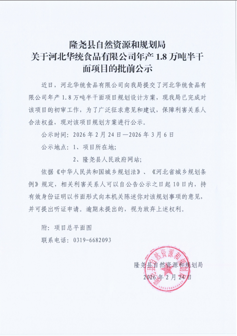 隆尧这个半干面项目,正在公示